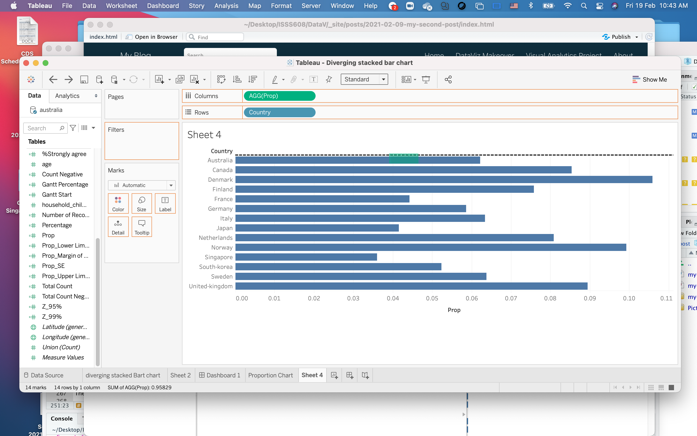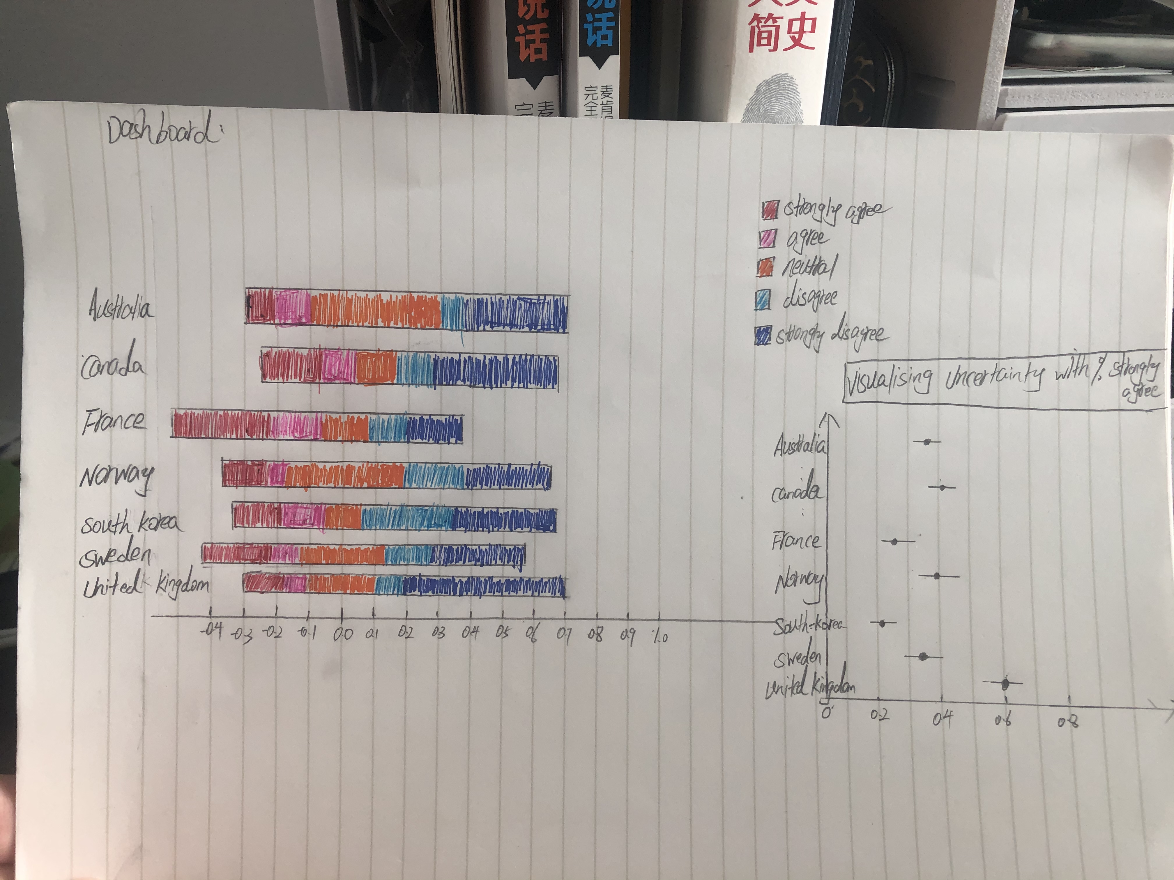 It is not a excellent data visualization since I want to compare different country’s opinion on pro-vaccine. So I believe it is better to change to diverging stacked bar chart in the view of comparison.